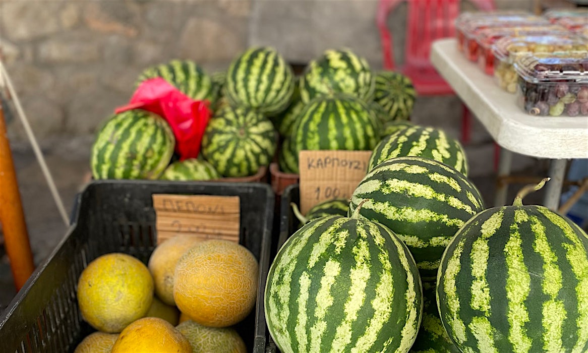 For øyas innbyggere er det en selvfølge å lage mat fra egne avlinger og naturen i nærområdet. Så godt som hver restaurant har sin egen olivenolje, hjemmelagde honning, sitroner fra egne sitrontrær, oliven og grønnsaker. Her får du på smake retter som har blitt tilberedt i generasjoner: pastaretten makarounes, kullgrillet lam og fylte zucchiniblomster.
