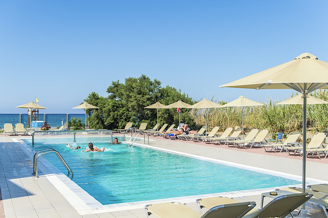 Bassengområdet vender mot havet og bassenget har en egen barneseksjon. Det finnes solsenger og parasoller på solterrassen.